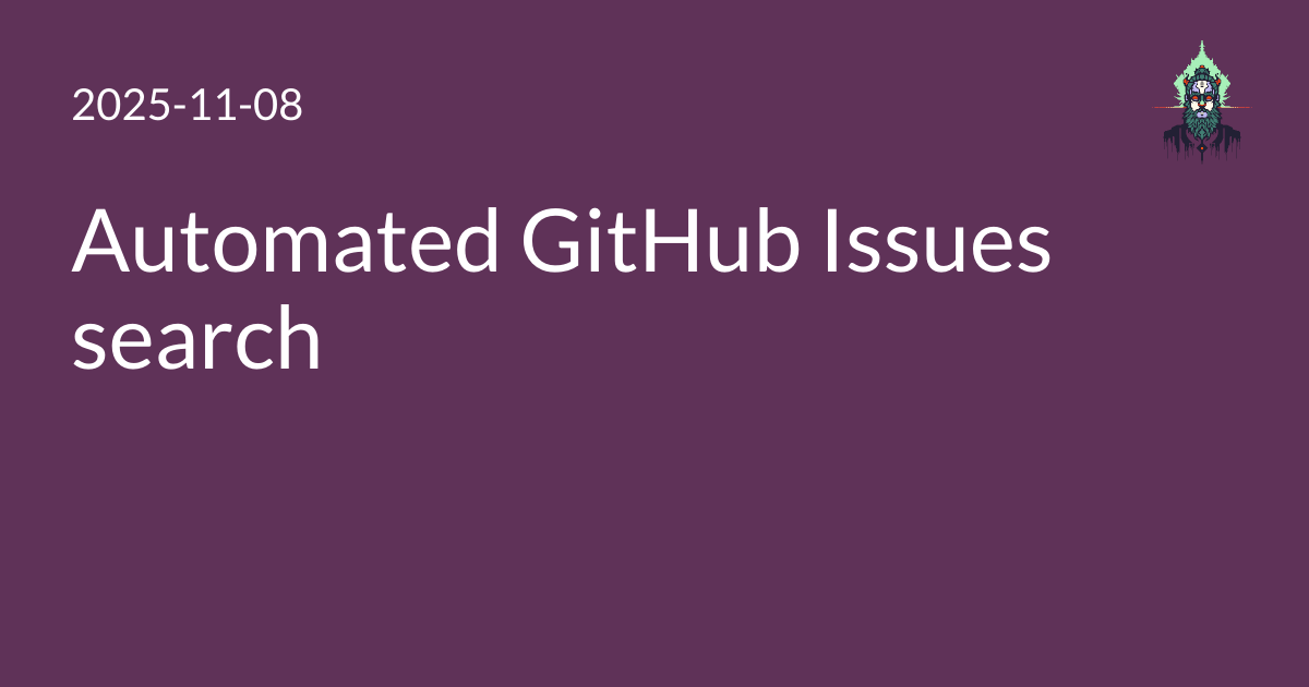 script.jsin the repository root and the workflow YAML to.github/workflows/search.yml. - Set repository to private (so that it doesn’t notify all the repos it links to in issues).