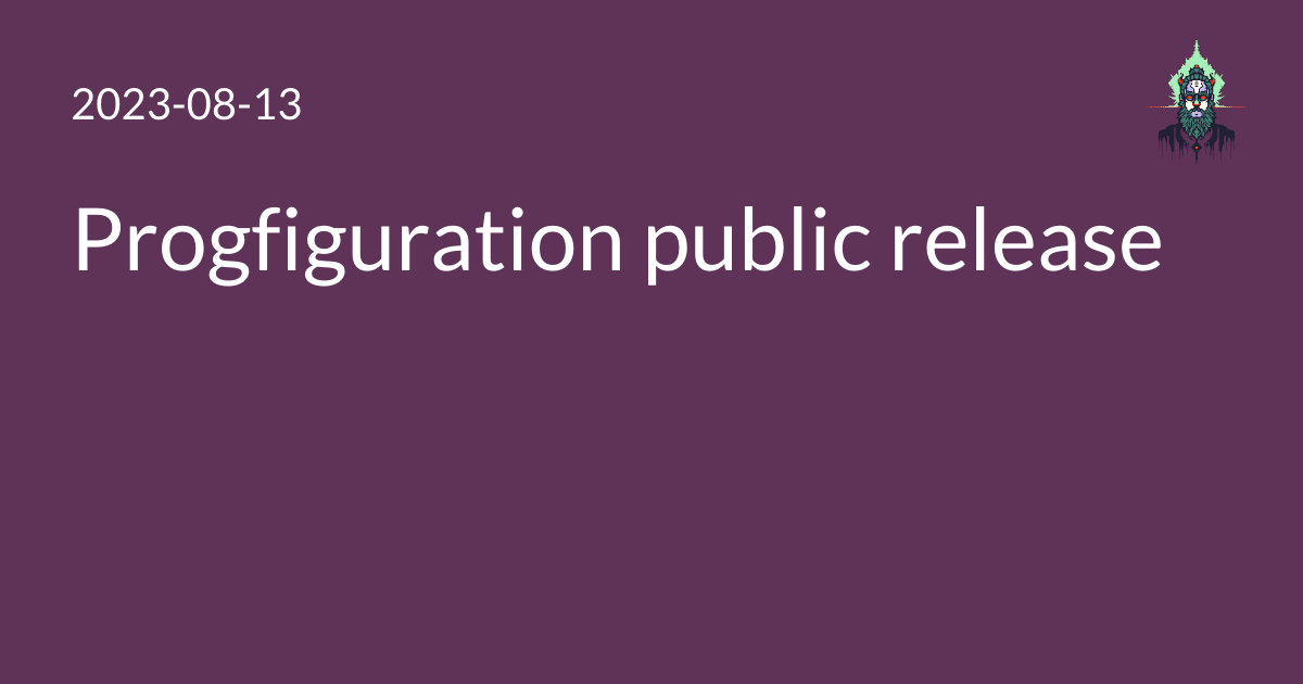 It’s now ready for its first public alpha release – Meet progfiguration 0.0.2! Read the documentation on the homepage or dive into the source at mrled/progfiguration if you want to learn more. In particular, you may be interested in reading the design document, which describes goals and key decisions of the project, including imperative programming, no requirement of a central server for secure secrets (or anything else), editable software, and speed.