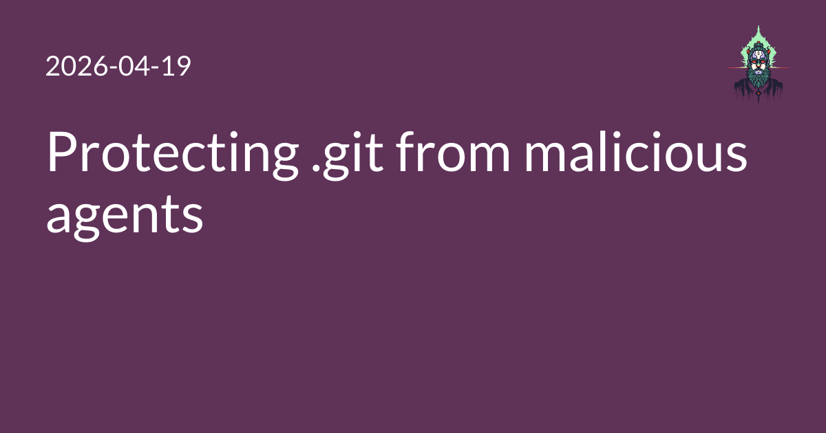 This method does have a big weakness, though: it can only protect you from git commands you run in the repository root. If a malicious agent creates a new git repo (or submodule) in a subdirectory of your project and you run commands there, they are run in the context of that repo, which the agent controls. git status is safe in any subdirectory, but even git status -v isn’t, as it shows diffs via diff drivers.